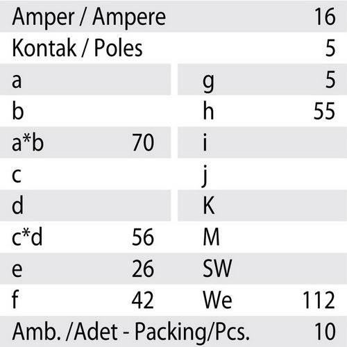 Current: 5x16 A. (3P+N+E) 6h